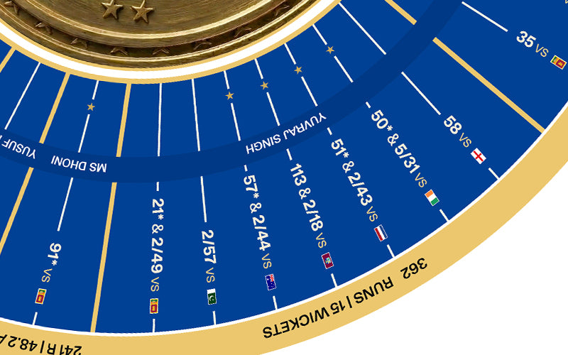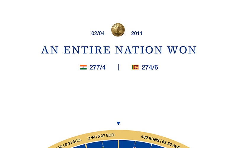 This edition is a curated visual archive of India’s 2011 World Cup triumph, where legacy is engineered into design and data is transformed into history. It captures the defining contributions of every squad member that shaped the journey to the title. Every innings, every spell, every turning point that carried a nation to the summit.
