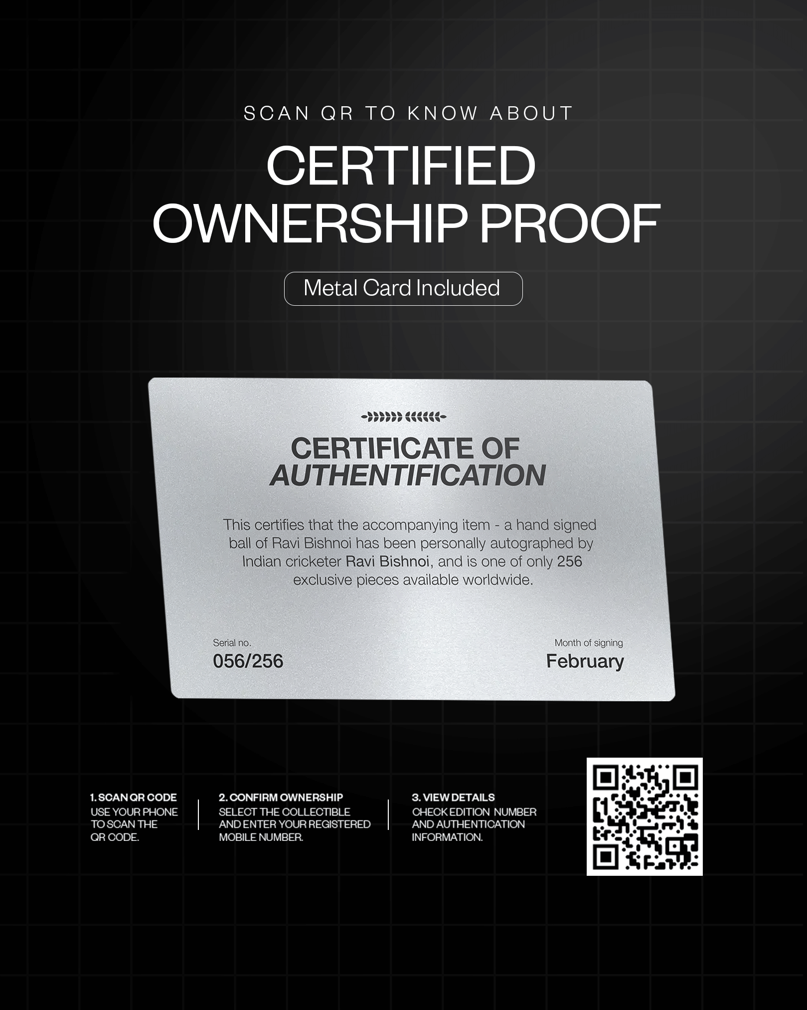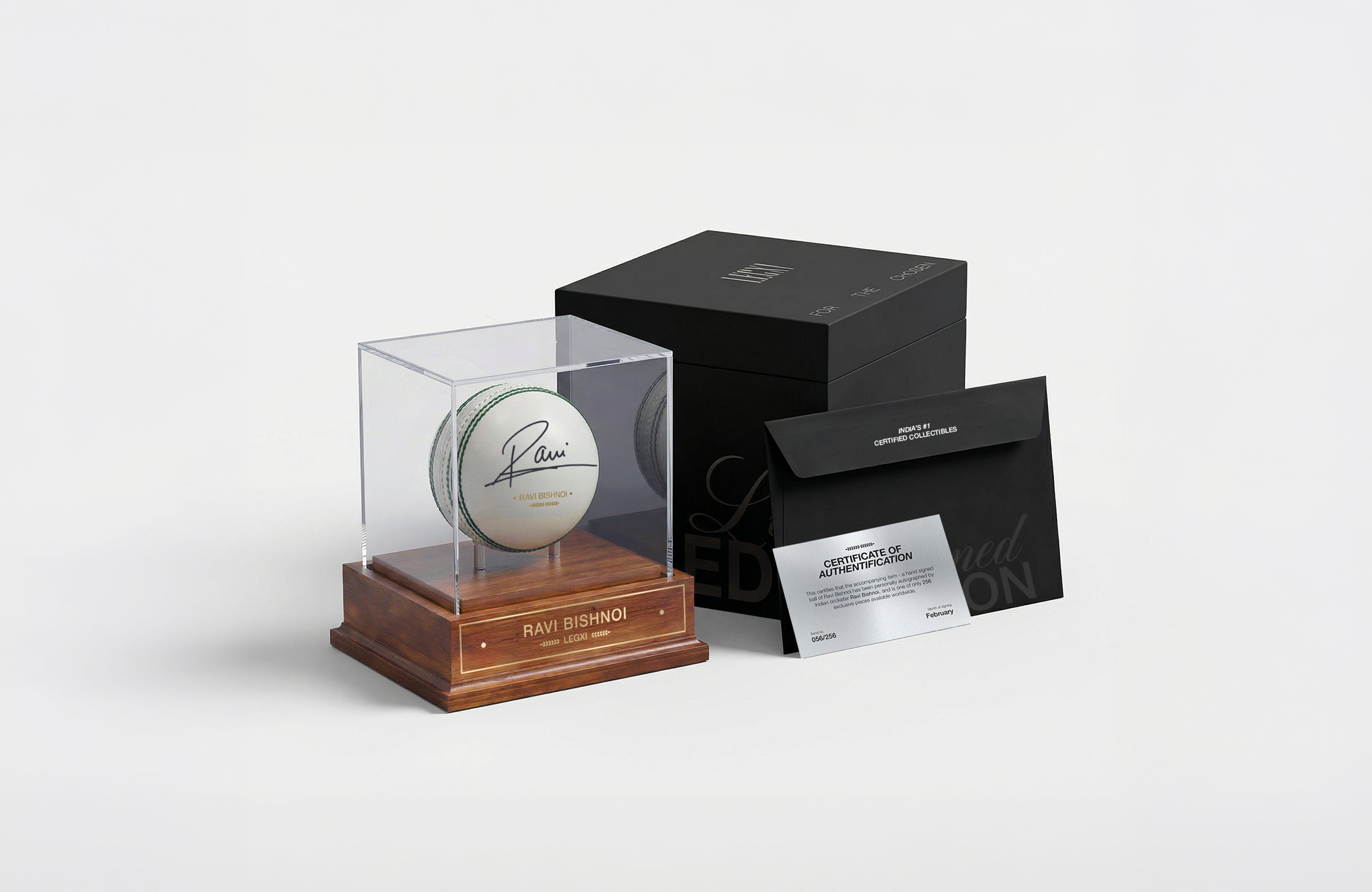Every collectible in this edition has been individually signed by RAVI BISHNOI in person using permanent archival ink, creating a direct physical link between the athlete and each piece.